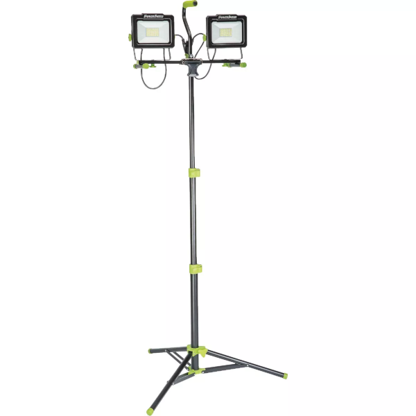 Professional grade 14,000-lumen dual head LED tripod work light. The lamp heads can be removed from the tripod stand with a flip of the quick release clip mechanism. The all metal adjustable tripod features flip locks to quickly and easily lock and unlock the height of the tripod. Independent sealed power switches control the light on each lamp head. Backed by a 5-year warranty and US based customer support.