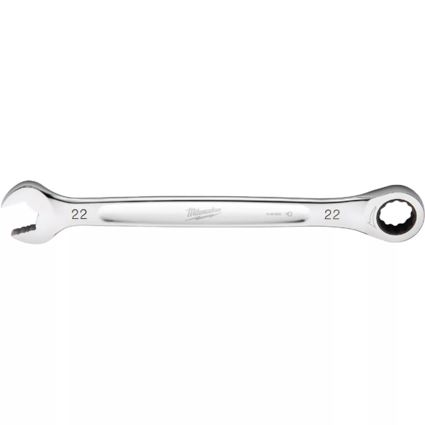 The Milwaukee Ratcheting Combination Wrench features 2.5 degrees of arc swing and 144 ratcheting positions allowing quick and efficient work in tight spaces. This wrench has double-stacked pawls within the ratcheting mechanism which increases durability and extends the life of the tool. The MAXBITE Open-End Grip improves the wrench’s grip on nuts and bolts offering 25% more torque than smooth-faced wrenches. The combination wrench features an ergonomic I-Beam handle design for improved comfort and ink-filled size labels for easy size identification and quick distinction between SAE and metric sets.