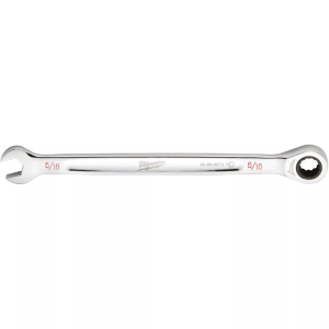 The Milwaukee Ratcheting Combination Wrench features 2.5 degrees of arc swing and 144 ratcheting positions allowing quick and efficient work in tight spaces. This wrench has double-stacked pawls within the ratcheting mechanism which increases durability and extends the life of the tool. The MAXBITE Open-End Grip improves the wrench’s grip on nuts and bolts offering 25% more torque than smooth-faced wrenches. The combination wrench features an ergonomic I-Beam handle design for improved comfort and ink-filled size labels for easy size identification and quick distinction between SAE and metric sets.