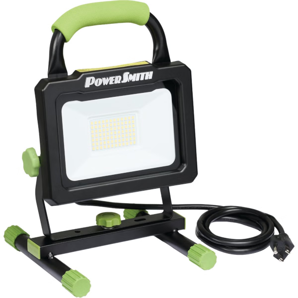 LED work light from PowerSmith provides brilliant lighting for you next project. Perfect for shedding light on your next flooring, paint, drywall, or remodeling project. Light up your garage, attic, or crawlspace. Extend the day on your backyard sports and hobbies. PowerSmith leads the way with the most lumens for your dollar on the market. A sealed power switch is perfect for indoor or outdoor use. A 5-foot power cord makes setup a breeze. Features all metal construction and impact resistant glass Lens to withstand the most demanding conditions.